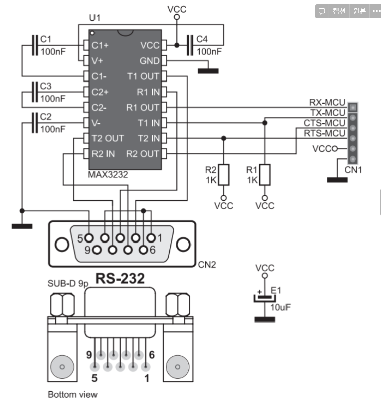 MCU나 다른 장치간의 통신은 UART 방식이 많이 사용되는데요. UART 통신을 일반 점퍼선으로 하는 경우, 거리가 수십 cm 이내로 가까우면 통신이 잘 됩니다. 그런데 거리가 멀어지면 노이즈가 커져서 오류가 많이 발생하고 정상적인 통신이 어렵습니다. DB9 또는 DB25 케이블을 사용하는 RS-232(RS232) 방식으로 UART 통신을 하면, 수십 m 거리에서도 통신할 수 있습니다. Capacitance가 낮은 케이블을 사용하면 약 300m 거리까지 통신할 수 있습니다. 이 글에서는 3.3V UART 신호를 RS-232 신호로 바꾸고 RS-232 통신의 파형을 관찰했습니다. 사용한 RS232 모듈은 MikroElektronika에서 MAX3232 IC를 사용해서 제작한 것입니다.